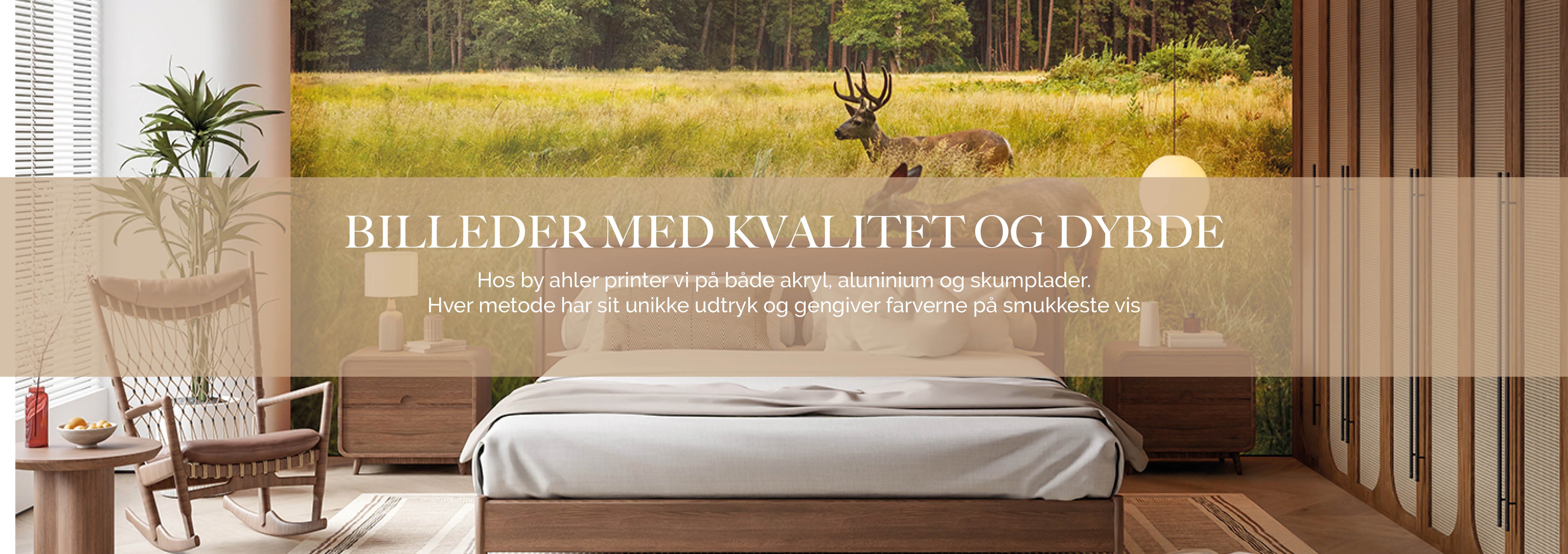 Hos By Ahler kan du nemt uploade dine fotos og få dem trykt i præcis det format, der passer til din indretning. Vi hjælper dig med at skabe eksklusiv vægkunst, der både afspejler din personlighed og giver dit hjem et unikt udtryk.