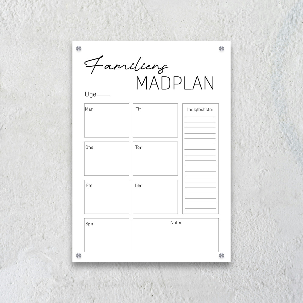 Madplanen giver dig et klart overblik over ugens måltider, hvor alle kan følge med i, hvad der står på menuen.