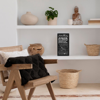 Skab personlighed og humor i hjemmet med Hundens husregler – et originalt By Ahler Blacksquare-design i tidløs og stilren stil. Skiltet er fremstillet i sort MDF på 18 mm, måler 24x49 cm og passer perfekt i både entre, køkken eller stue.