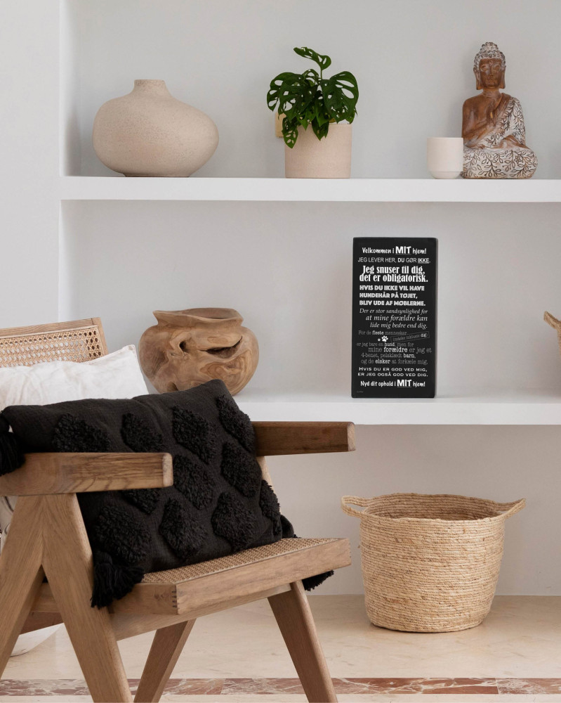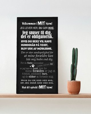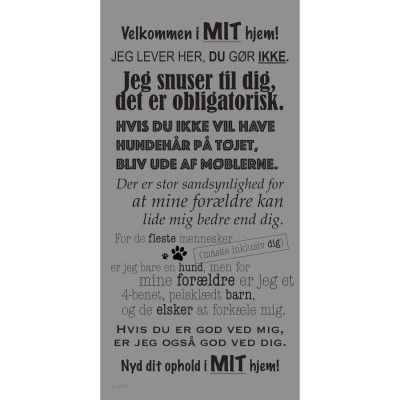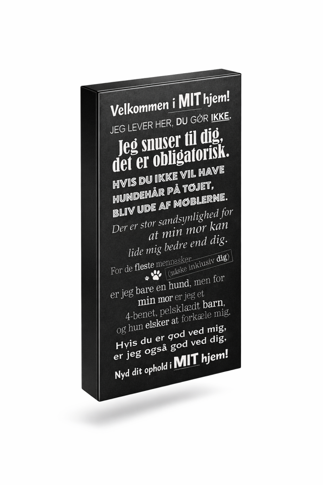 Dette unikke vægskilt er den ideelle gave til hundeejere – eller en charmerende tilføjelse til dit eget hjem. De humoristiske regler minder på fineste vis om, hvem der egentlig bestemmer i huset.