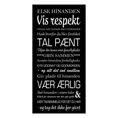 Dette unikke vægskilt er den ideelle pargave – eller en charmerende tilføjelse til dit eget hjem. De humoristiske regler minder på fineste vis om, hvordan man skal behandle hindanden.
